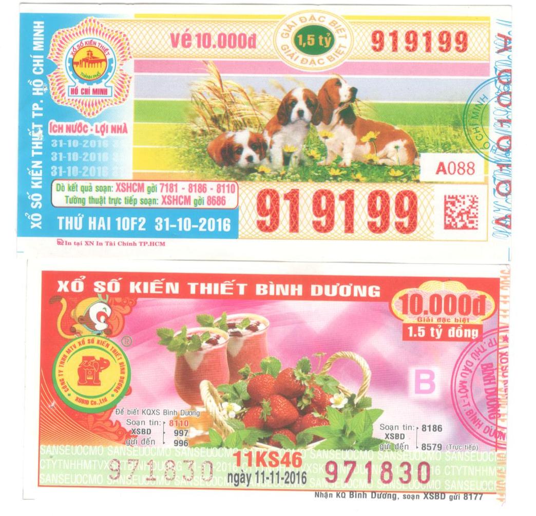 - Sắc thái đặc thù logo của từng tỉnh thì các các công ty gởi về cho xưởng in, tính theo tỷ trọng trên thị trường xưa nay để in , ví dụ : vé Tây Ninh cặp 80 vé thì đựơc in 35% trên tỉ trọng của ngày phát hành , vé An Giang cũng 35% trên tỷ trọng vé phát hành , BÌnh Thuận 30% trên tỷ trọng vé phát hành ,